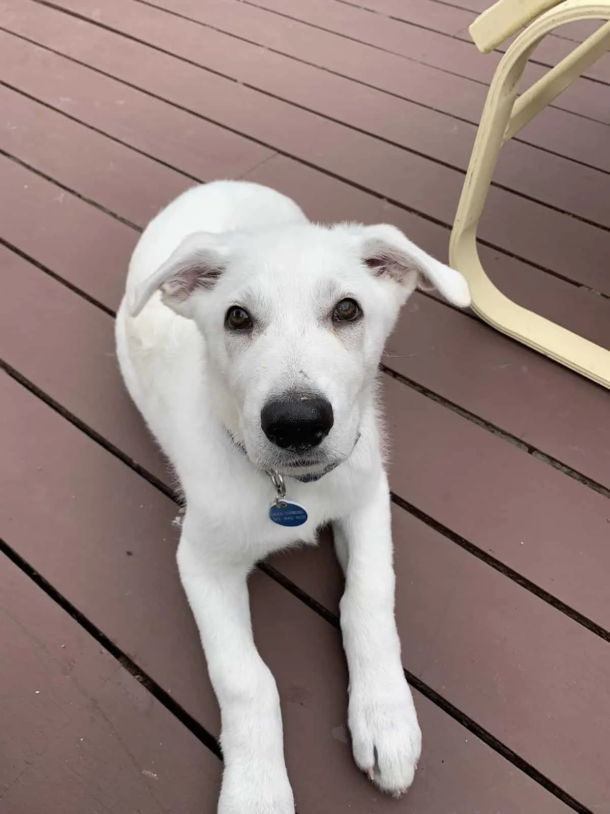 Teddy hanging out with his family on their deck.